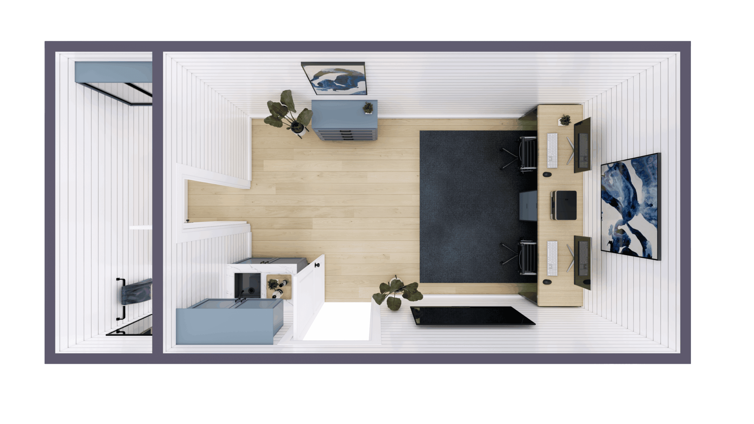 Our shipping container offices are crafted for functionality and comfort, offering solutions for various professional needs. Whether you need a compact workspace or a fully equipped office with amenities, we have designs to suit your requirements. Explore our available floor plans below, or let us customize a solution tailored to your specific needs. We can modify existing designs or create entirely new layouts to match your workspace vision.